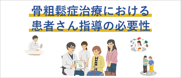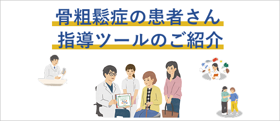 当シリーズではより多くの骨粗鬆症の患者さんに適切な治療を開始・継続していただくために、患者さんおよびそのご家族への適切な指導の重要性や、指導の際にお役立ていただける各種ツールをご紹介します。