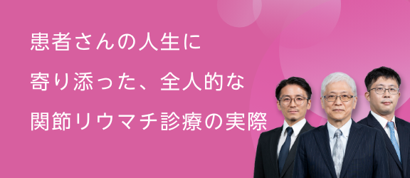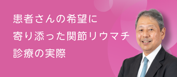 関節リウマチ患者の治療課題と戦略について、また各ご施設の取り組みについて、関節リウマチのエキスパートの先生方に解説いただきます。